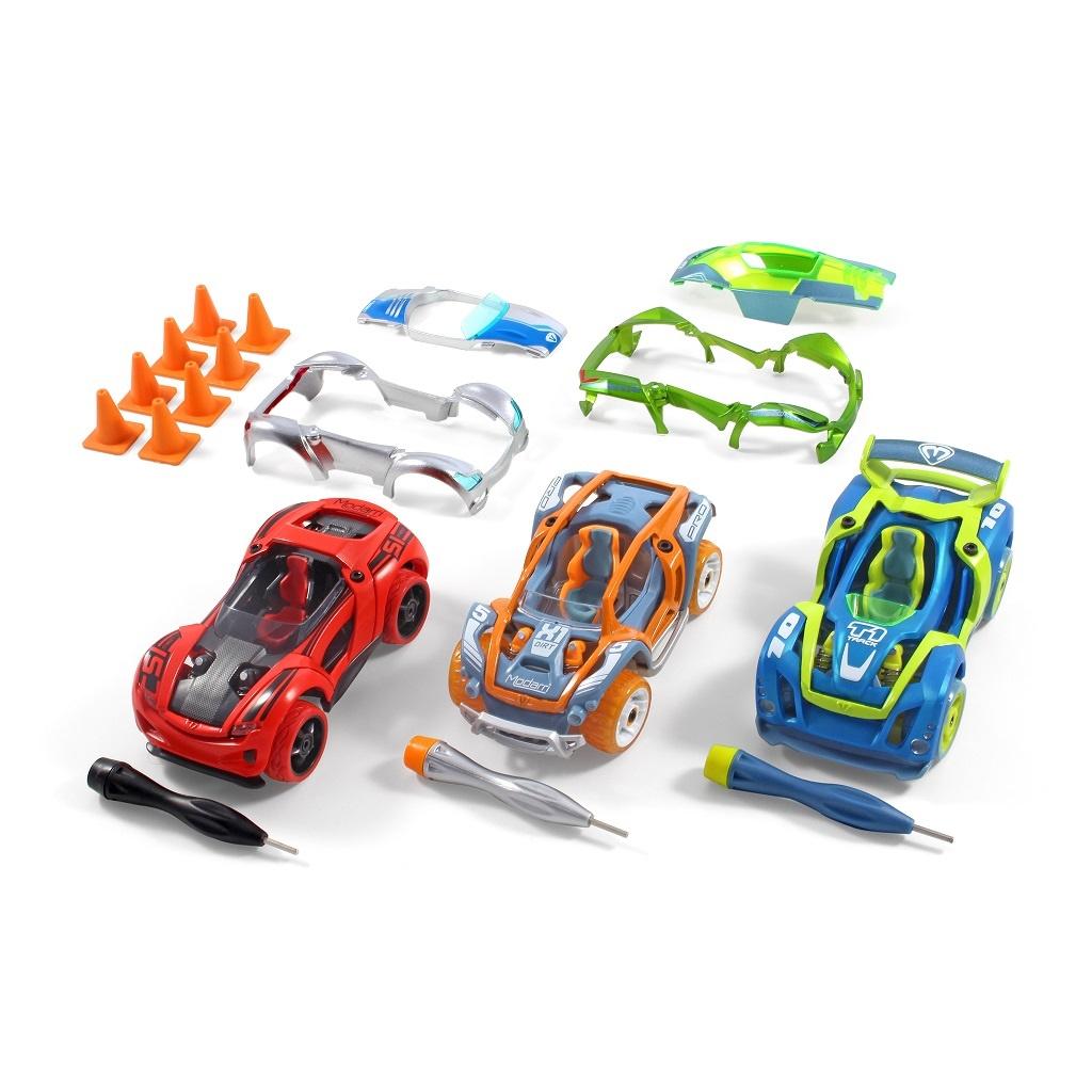 Każdy samochód Modarri w 3-Paku Delux składa się z wysokiej jakości części takich jak: