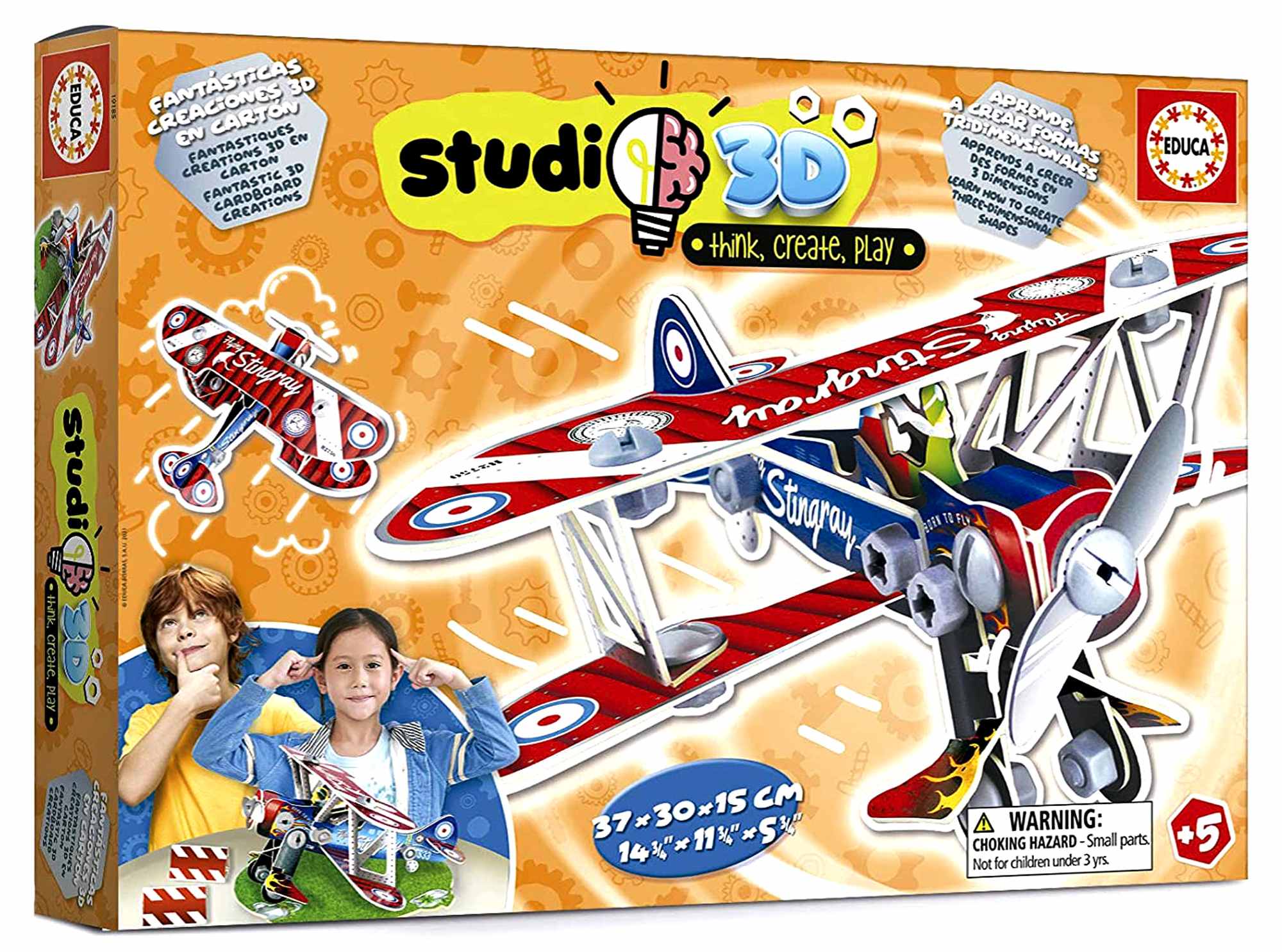 Prezentowana zabawka umożliwia zbudowanie modelu samolotu. Dzieci muszą wykorzystać zdolności manualne aby odpowiednio poskładać tekturowe i plastikowe elementy. Gotowy model będzie miał 37 cm długości i 15 cm wysokości. Zabawka ta będzie idealna dla każdego małego miłośnika modelarstwa i samolotów. Wymiary samolotu po ułożeniu: 37 x 30 x 15 cm. Marka Educa to wieloletnia tradycja. Jej historia rozpoczyna się w 1894 roku i trwa do dzisiaj. Obecnie, produkty spod znaku Educa są dystrybuowane do ponad 75 krajów na całym świecie. Marka Educa to gwarancja najwyższej jakości. 90% produktów jest wytwarzanych w zakładach znajdujących się w Barcelonie. Przechodzą one surowe kontrole bezpieczeństwa, a do ich wytworzenia używa się odnawialnych i przyjaznych dla środowiska surowców. ZAWARTOŚĆ: 20 elementów tekturowych 18 śrub 18 nakrętek instrukcja Wiek układającego: od 5 lat Cechy dodatkowe: 3D