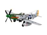 P-51 Mustang był jednym z najlepszych samolotów bojowych II wojny światowej i okazał się bardzo szybki i zwrotny. P-51D osiągał prędkość maksymalną 721 km/h i był używany głównie jako myśliwiec eskortujący formacje bombowe. - Historyczny model Revella - Ruchome śmigło - Figurka pilota - Czołgi pomocnicze. Kalkomanie dla wersji USAAF: -P-51D Mustang, 359 FG, 368 FS, 8th AF, USAAF, East Wretham, Anglia, 1945.