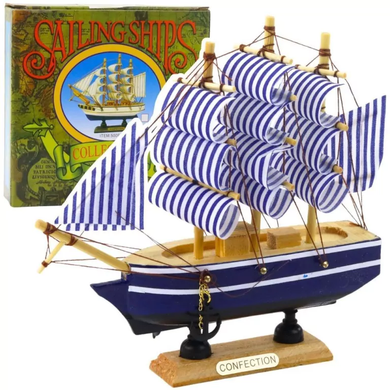 MODEL TRÓJMASZTOWEGO ŻAGLOWCA - MINIATUROWA REPLIKA DEKORACYJNA Stylizowany model żaglowca o klasycznej konstrukcji to idealna propozycja dla miłośników morskiej estetyki i tematycznych dekoracji. Charakterystyczne trójmasztowe ożaglowanie w biało-niebieskie pasy oraz granatowy kadłub z białym pasem tworzą efektowną, ekspozycyjną formę. Dzięki estetycznym proporcjom i ręcznemu wykończeniu, model wyróżnia się subtelnym detalem i eleganckim wyglądem. Wykonany z drewna i ozdobiony ręcznie, model umieszczono na stabilnej podstawce z tabliczką, co pozwala na łatwe ustawienie go na biurku, półce lub w witrynie. Kompaktowy rozmiar sprawia, że świetnie pasuje do mniejszych przestrzeni, wnosząc do wnętrza styl marynistyczny i odrobinę podróżniczego ducha. To świetna propozycja zarówno do wnętrz nowoczesnych, jak i klasycznych - ożywia aranżację i przyciąga wzrok. Idealny jako prezent dla pasjonatów żaglowców, miłośników podróży oraz osób ceniących eleganckie dekoracje o morskiej tematyce. SPECYFIKACJA Model: Dekoracyjny trójmasztowy żaglowiec Typ jednostki: Klasyczny model żaglowca Styl: Marynistyczny, kolekcjonerski, ekspozycyjny Wymiary modelu: 16 x 15,5 x 3,5 cm Wymiary opakowania: 16,5 x 16,5 x 4,5 cm Materiał: Drewno, tkanina, sznurek Kadłub: Granatowy z białym pasem Żagle: Biało-niebieskie paski, materiałowe Olinowanie: Ręczne, ciemnobrązowe Podstawka: Drewniana z tabliczką Zastosowanie: Dekoracja, kolekcja, ekspozycja Bezpieczeństwo: Produkt zgodny z CE ZAWARTOŚĆ ZESTAWU Model trójmasztowego żaglowca Drewniana podstawka z tabliczką Estetyczne pudełko prezentowe