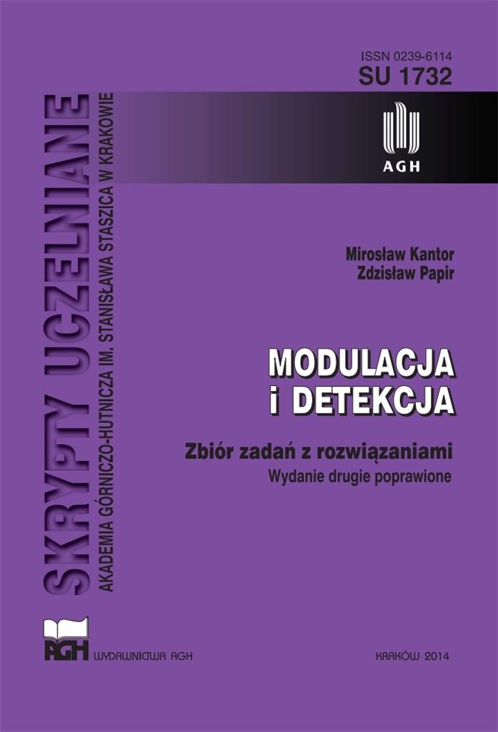 Skrypt dotyczy przede wszystkim modulacji harmonicznego sygnału nośnego. Powstał w ramach wykładu i ćwiczeń audytoryjnych "Modulacja i detekcja". Zajęcia te od wielu lat prowadzone są dla studentów trzeciego roku kierunku Elektronika i Telekomunikacja na Wydziale Elektrotechniki, Automatyki, Informatyki i Elektroniki Akademii Górniczo-Hutniczej. Zbiór zadań składa się z dwóch głównych części. W pierwszej znajdują się definicje i twierdzenia oraz zadania ze wskazówkami ułatwiającymi ich rozwiązanie. W drugiej części skryptu zamieszczono rozwiązania oraz wskazówki do wszystkich zadań zaproponowanych w części pierwszej.