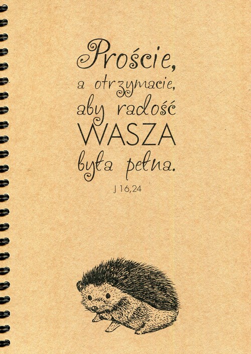 Mój dziennik - Jest to specjalnie skrojony zeszyt, który zawiera werset biblijny na każdej kartce. Jeśli jesteś osobą, która zapisuje myśli, modlitwy bądź słowa Boga, które do ciebie przemówiły, jest to idealny produkt dla ciebie. Okładka wykonana jest z szarej tektury, co daje wrażenie naturalnej okładki. Spirala dodaje wspaniałości swoim czarnym kolorem. Okładka jest usztywniona dodatkowo gramaturą papieru.