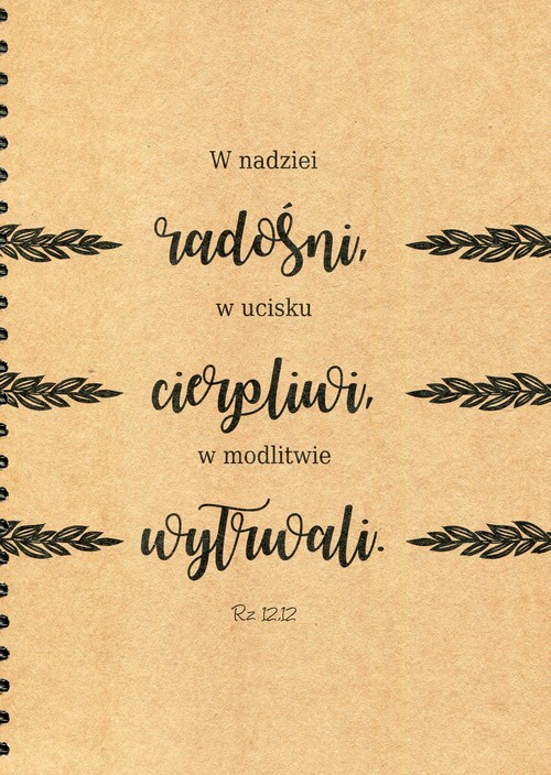 Mój dziennik - Jest to specjalnie skrojony zeszyt, który zawiera werset biblijny na każdej kartce. Jeśli jesteś osobą, która zapisuje myśli, modlitwy bądź słowa Boga, które do ciebie przemówiły, jest to idealny produkt dla ciebie. Okładka wykonana jest z szarej tektury, co daje wrażenie naturalnej okładki. Spirala dodaje wspaniałości swoim czarnym kolorem. Okładka jest usztywniona dodatkowo gramaturą papieru.