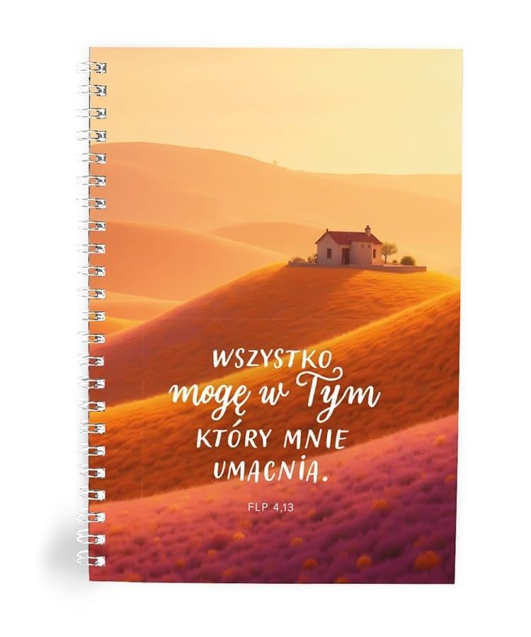 Jeśli potrzebujesz motywacji i siły ten dziennik jest dla Ciebie. Cytat z Flp 4,13 to jedno z najbardziej inspirujących zapewnień, a okładka w ciepłych, złocistych barwach przypomina o Bożej obecności pośród codzienności.