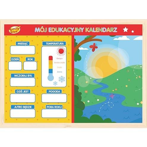 Mój Edukacyjny Kalendarz z zegarem to doskonała, drewniana pomoc dydaktyczna. Poprzez zabawę nauczy Twoje dziecko określania: daty, pory roku, dni tygodnia i 12 miesięcy, pogody, pojęcia wczoraj, dzisiaj, jutro i aktualnego roku.