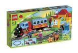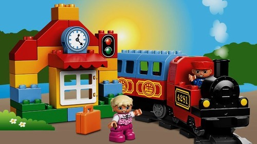 Wprowadź dziecko do świata pociągów i budowania z pierwszą kolejką LEGO DUPLO! Zbudujcie kolorowy pociąg parowy z efektami dźwiękowymi, wagonem pasażerskim, stacją z kasą biletową, pompą i sygnalizatorem. Zestaw zawiera mnóstwo klocków DUPLO i torów, więc idealnie nadaje się dla młodych budowniczych, którzy całymi godzinami będą twórczo bawić się w kolejarzy. W zestawie są również figurki DUPLO — maszynista i dziecko.