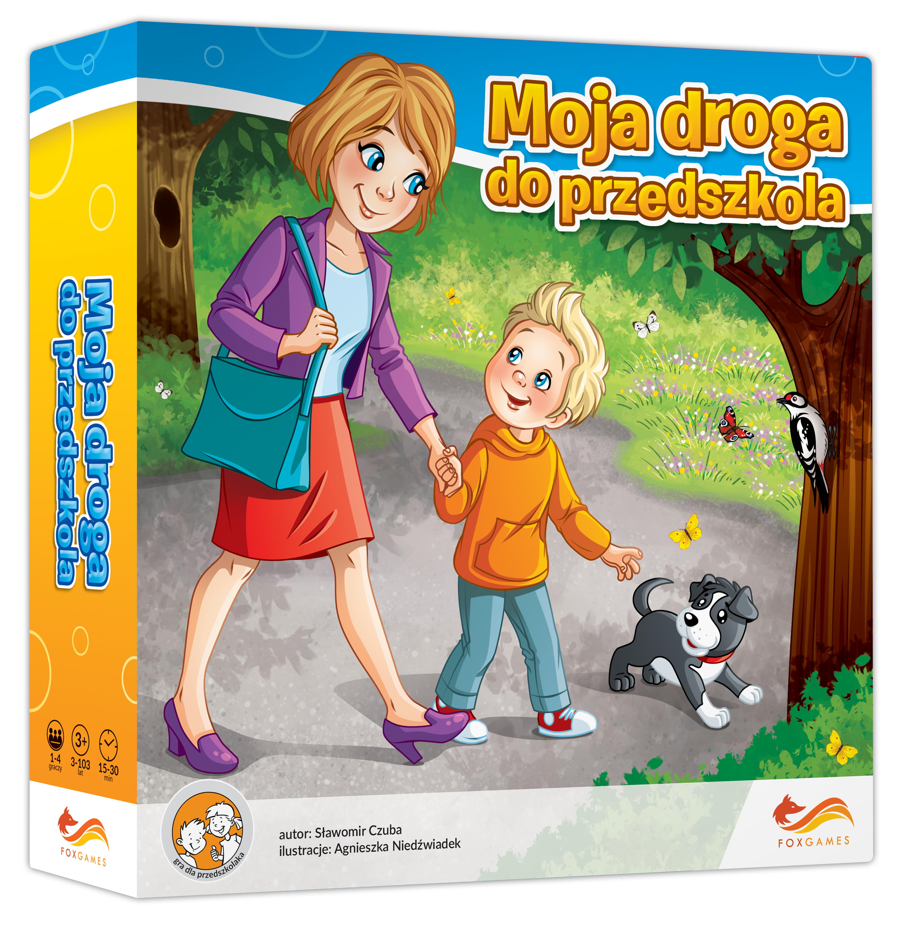 Droga do przedszkola może być wspaniałą przygodą! Dzielne maluchy codziennie pokonują ja z rodzicami. Ciekawe czy zapamiętują, jakie ciekawe elementy krajobrazu można spotkać po drodze. Tyle się dzieje dookoła, a przecież nie można się spóźnić. Którędy dzisiaj pójdziemy do przedszkola, mamo? Proste zasady i trzy warianty rozgrywki. Zawartość: 8 kafelków planszy 20 kafelków obiektów 25 okrągłych żetonów kolorowa kostka 4 pionki instrukcja. Liczba graczy 1-4 Wiek 3+