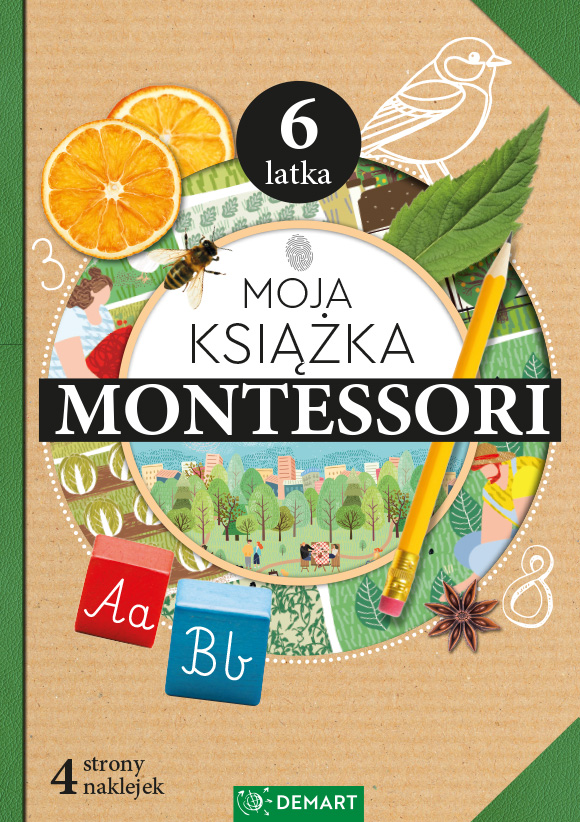 Książka zawiera różnorodne zadania, łamigłówki i aktywności przygotowane w duchu metody Marii Montessori. Zabawy koncentrują się wokół 4 modułów: "Ja", "Rodzina", "Grupa rówieśnicza" i "Świat (ludzie przyroda kosmos)" i realizują atrakcyjne treści z edukacji m.in. polonistycznej, matematycznej, przyrodniczej i plastycznej. Zachęcają do samodzielnego poznania ciała człowieka, odkrywania fascynujących ciekawostek dotyczących świata roślin i zwierząt, Ziemi i kosmosu. Dołączone do książki naklejki, karty do wycinania i lupa sprawiają, że dziecko zgodnie z Montessoriańskią ideą staje się małym odkrywcą świata, a tym samym "budowniczym samego siebie".