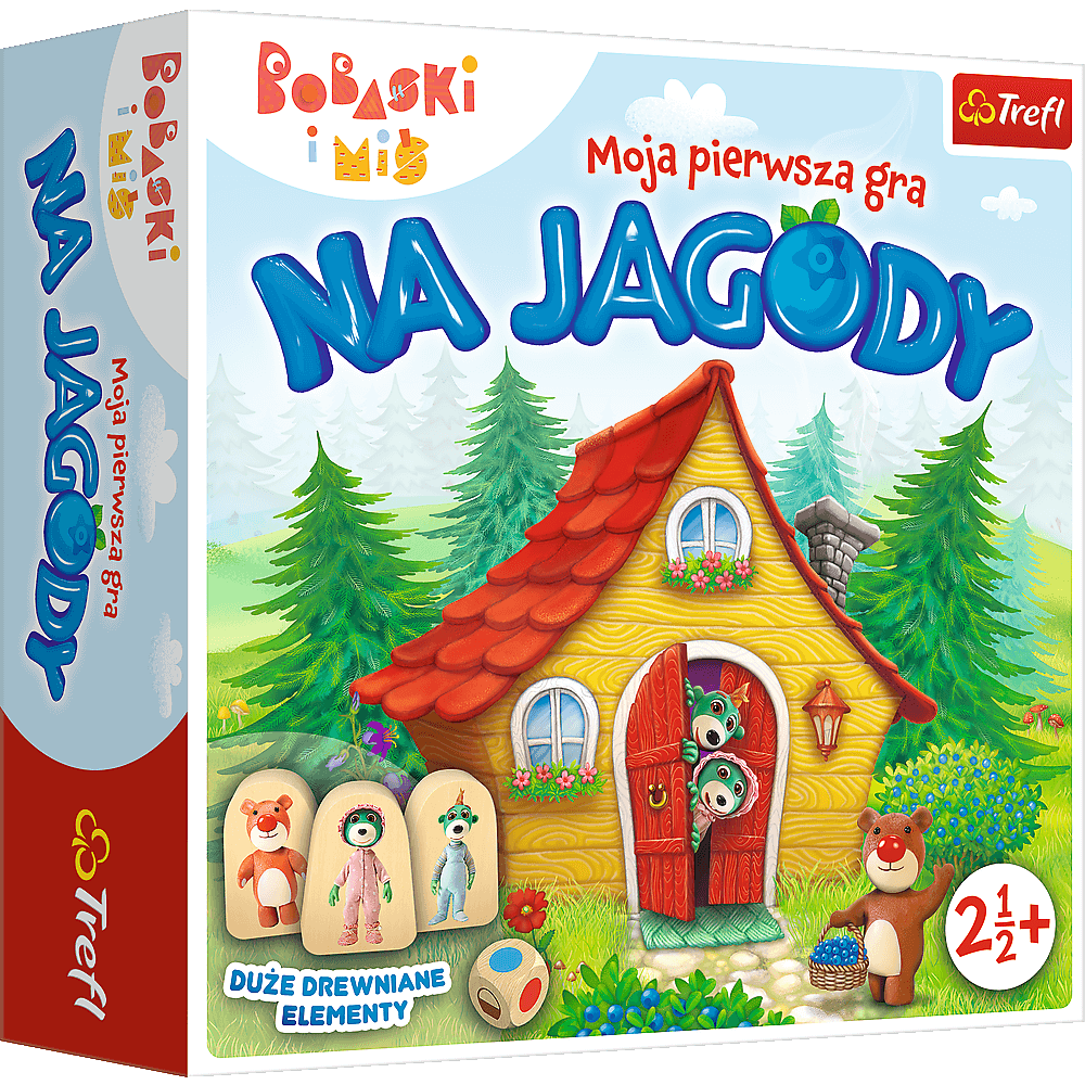 Bohaterowie serialu Bobaski i Miś wyruszają na leśną przygodę, po drodze zbierając pyszne jagódki. Ile owoców uda im się zebrać, zanim dojdą do chatki Misia? Proste zasady, przestrzenna plansza oraz duże drewniane elementy, sprawiają, że gra jest idealna na początek przygody z grami planszowymi. Świetna zabawa w towarzystwie lubianych przez najmłodszych bohaterów.