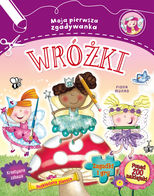 Chwyć za kredki i przygotuj się na doskonałą zabawę z wróżkami! Zajrzyj do środka, a zobaczysz roześmiane wróżki latające na tle błękitnego nieba! Ta książka zawiera wiele ciekawych zagadek i gier z wróżkami i innymi postaciami z zaczarowanego świata. Znajdziesz tu: mnóstwo naklejek, łączenie kropek, labirynty, proste ćwiczenia matematyczne, zadania polegające na dopasowywaniu elementów, które dostarczą dzieciom rozrywki na długie godziny.