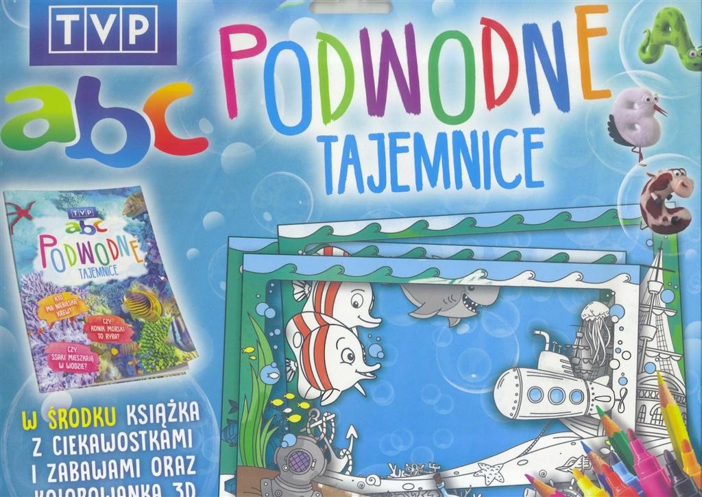 Teczka w formacie 3D dla dzieci . W środku znajdują się karty do malowania i książeczka z informacjami na temat świata oceanów i istniejącego w nim życia.