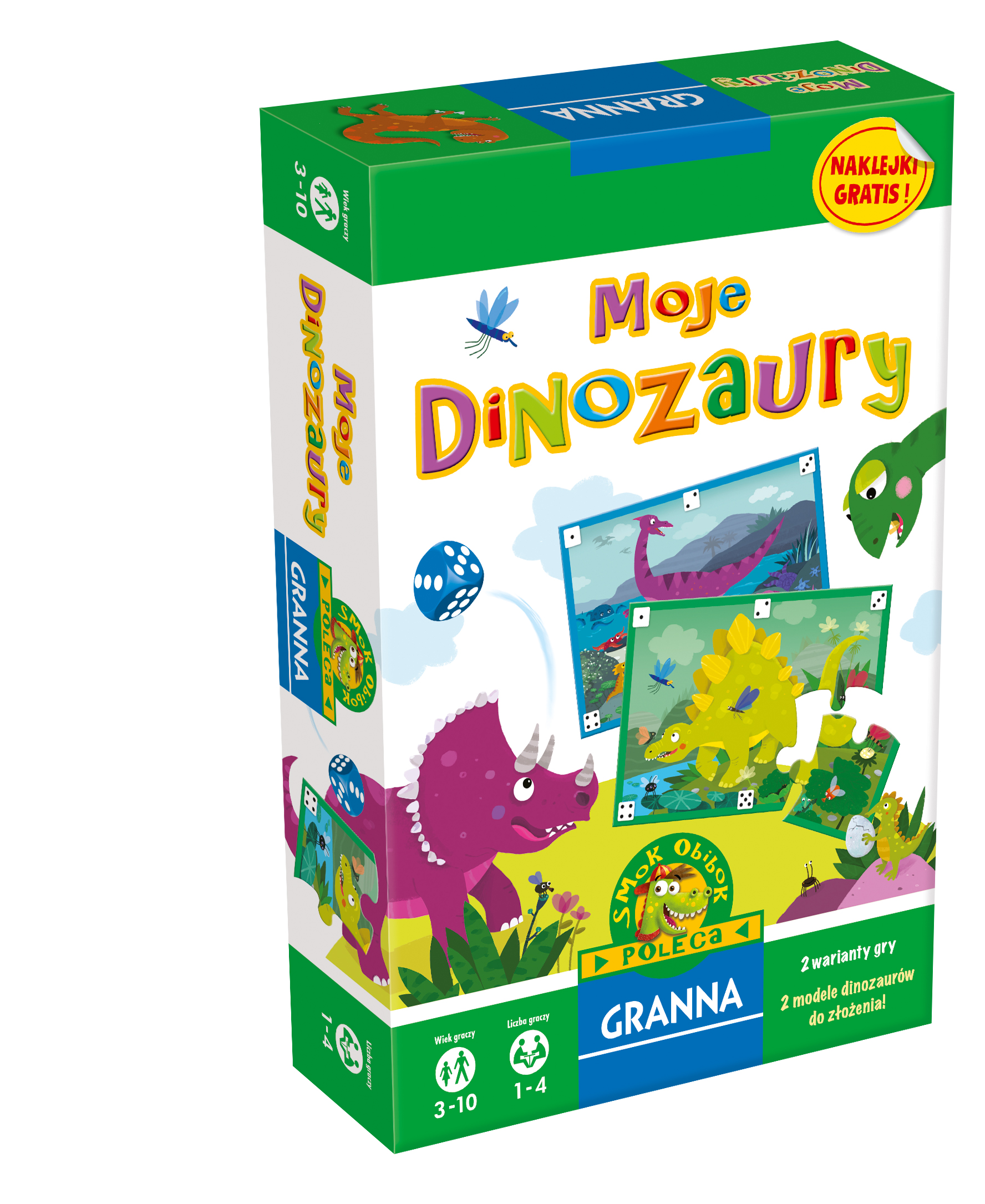 Kolejna propozycja dla przedszkolaków z serii Smok Obibok Poleca. Celem gry jest ułożenie postaci bajecznie kolorowych dinozaurów. Każdy element oznaczony jest kostką z oczkami. Rzucamy kostką i zbieramy elementy dinozaurów oznaczone odpowiednią liczbą oczek. Kto pierwszy ułoży swojego dinozaura, ten wygra. Pudełko zawiera dwie gry wykorzystujące puzzlowe układanki. To jednak nie jedyna atrakcja. Najmłodsi gracze znajdą w środku dwa modele 3D dinozaurów do samodzielnego złożenia. Ponadto do zestawu dołączone są naklejki z dużymi i małymi dinozaurami. wiek 3-10 lat, liczba graczy 1-4