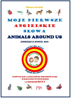 MOJE PIERWSZE ANGIELSKIE SŁOWA ZWIERZĘTA WOKÓŁ NAS to książka należąca do serii ""Moje pierwsze angielskie słowa"". Jest to tematyczny słownik obrazkowy dla dzieci, który pozwoli w łatwy sposób przyswoić nazwy najpopularniejszych zwierząt z najbliższego otoczenia. Dzięki licznym i ciekawym ćwiczeniom i wierszom dziecko trwale zapamięta nazwy i pisownię poszczególnych pojęć zawartych w książce. Ponadto każda książka posiada nagranie audiobook mp3 do pobrania ze strony wydawnictwa za pomocą kodu znajdującego się na tylnej okładce książki, które to nagranie pozwoli na osłuchanie się z prawidłową wymową treści zawartych w opracowaniu.