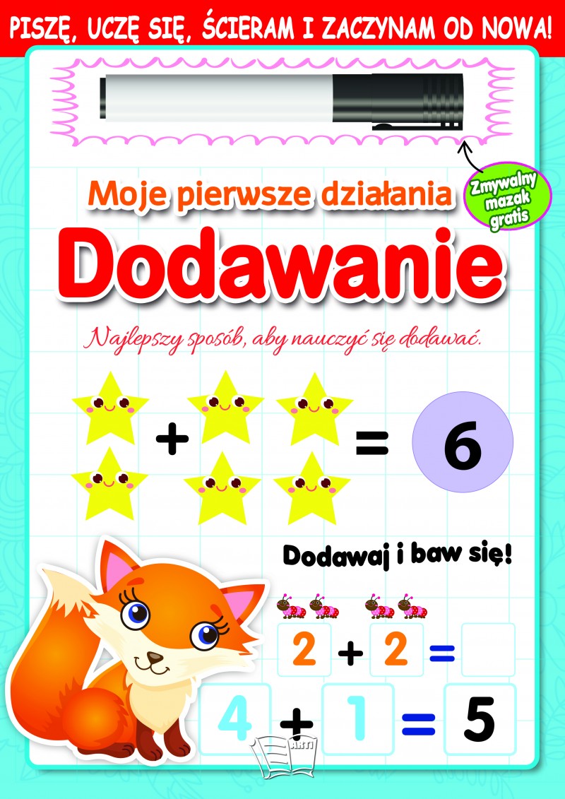 Pisanie literek, odkrywanie nowych słów i wykonywanie działań matematycznych może być świetną zabawą. Dzięki użyciu ścieralnego pisaka dziecko będzie ćwiczyło pisanie i doskonaliło swoje umiejętności. Czynności może powtarzać wielokrotnie, aż do osiągnięcia pełnej biegłości. Tytuły z tej serii: Uczę się pisać Duże litery Uczę się pisać Angielskie słówka Uczę się pisać Liczby od 1 do 40 Uczę się pisać Małe litery Moje pierwsze działania Mnożenie Moje pierwsze działania Dodawanie Moje pierwsze działania Odejmowanie Kosmiczna przygoda