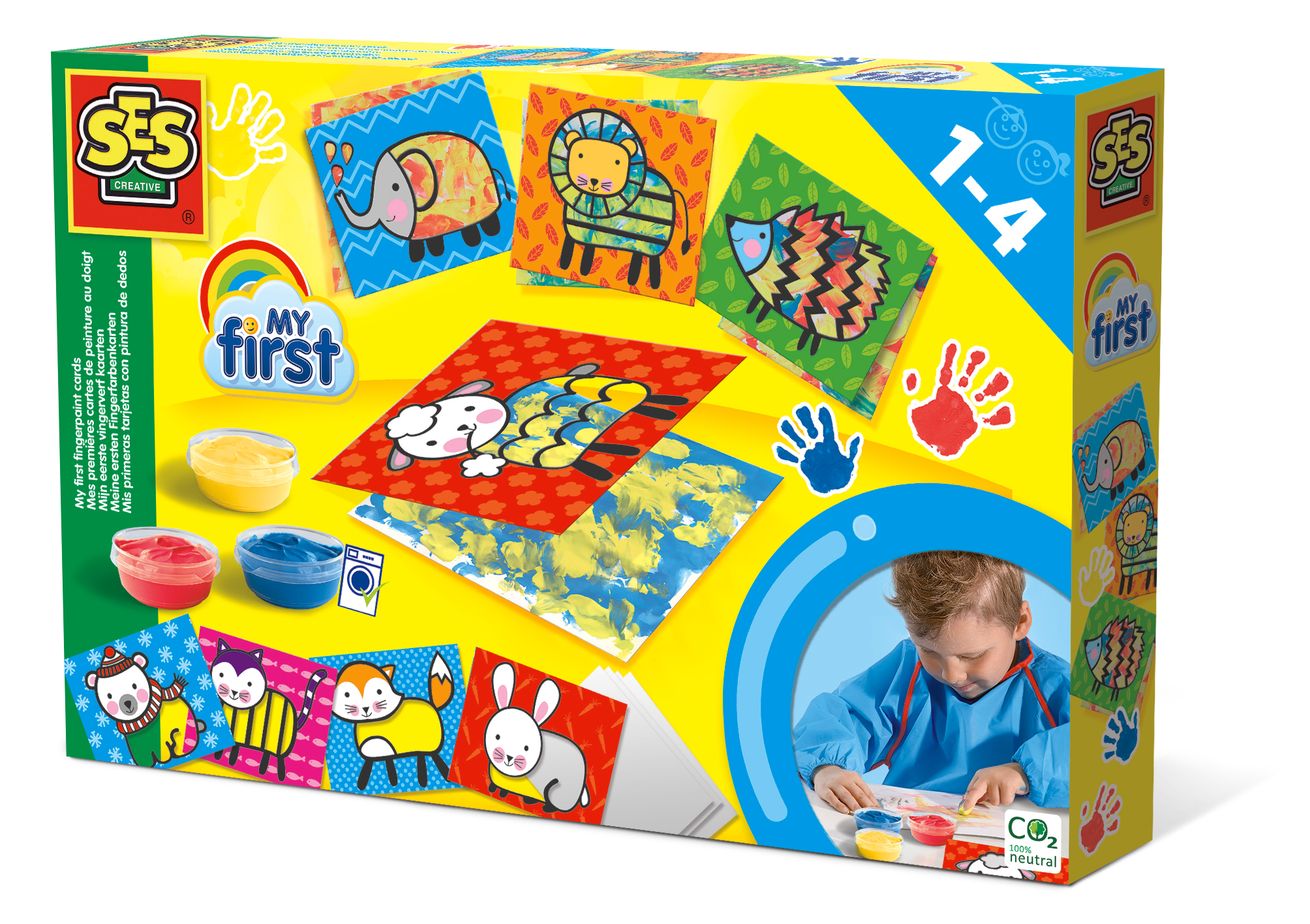 Przy użyciu tych pierwszych farbek do malowania palcami marki SES, Twoje dziecko może się doskonale bawić tworząc swoje pierwsze, wspaniałe dzieła sztuki. Namaluj na białych arkuszach obraz, używając farb do malowania palcami. Zanim farba wyschnie, umieść na wierzchu zabawną kartę zwierzątka. Zawsze uzyskasz wyśmienity rezultat! Dla dzieci od 1 roku życia.