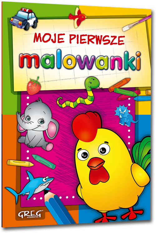 Wszystkie dzieci uwielbiają kolorować obrazki! Moje pierwsze malowanki to książeczka dla najmłodszych pociech, dlatego ilustracje w niej są duże, wyraźne, bardzo proste i posiadają kolorowy wzór tej samej wielkości. Przedstawiają motywy, które dzieci kochają najbardziej - są tu pieski, kotki, samolot, owoce, rekin, motylki... Maluchy bez problemu je pokolorują, gdyż poziom trudności jest dostosowany do ich możliwości, i będą się przy tym doskonale bawić