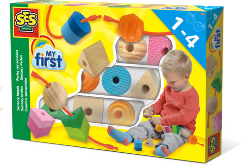Dzięki koralikom SES Sensory dziecko może odkryć zmysłami kształty, materiały, kolory i tekstury oraz zrobić piękny naszyjnik. Bezpieczny sznurek jest zrobiony z oddzielnych części, które się łączą i łatwo rozszczepiają. Oznacza to również, że możesz raz za razem zrobić nowy naszyjnik Dla dzieci od 1 roku życia