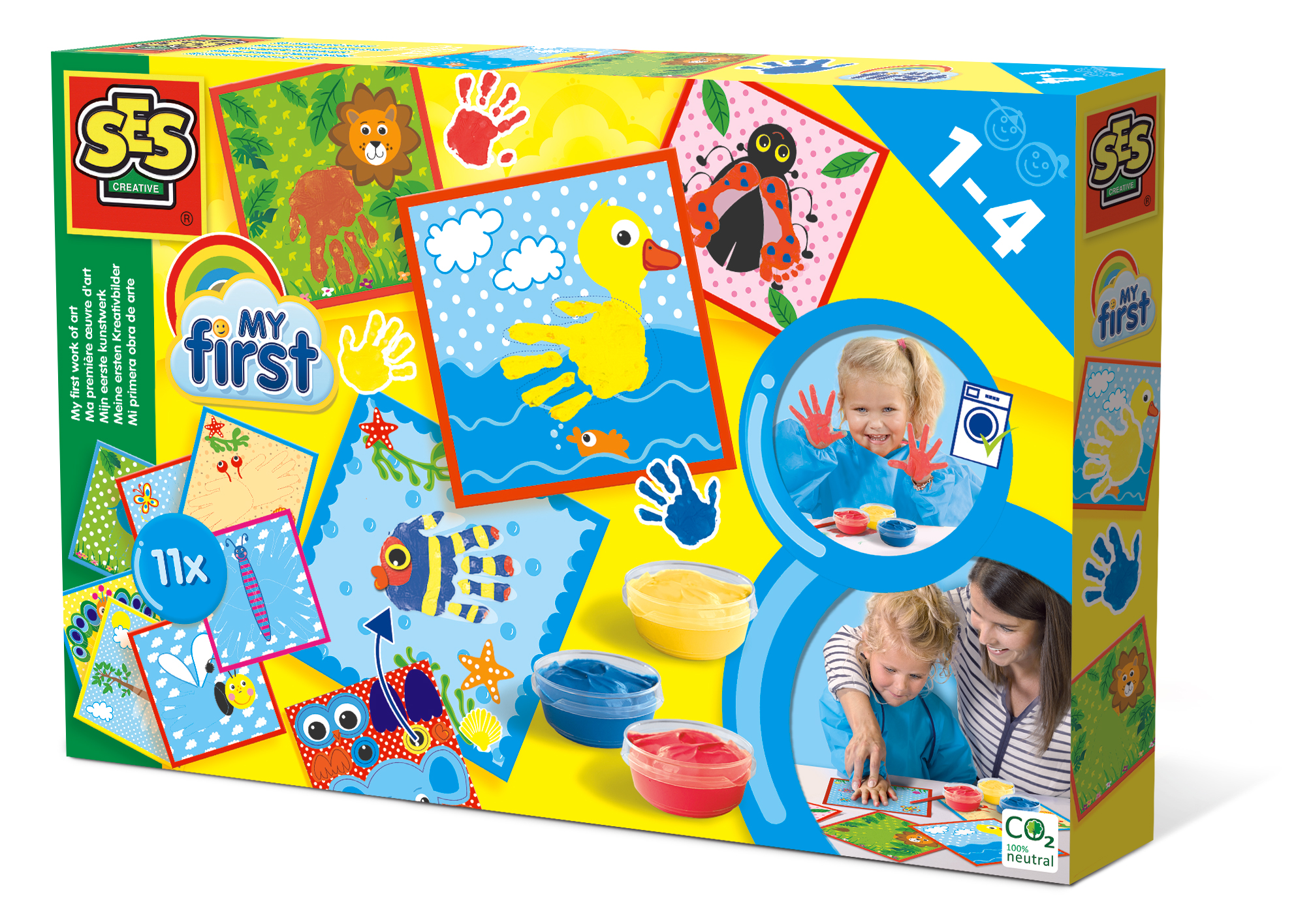 Zestaw SES mój pierwszy obraz artystyczny jest doskonałym sposobem dla rodziców, aby zapoznać dzieci z malowaniem. Dzieciom malowanie sprawia wiele radości. Zabawka zawiera wesołe szablony, na których pokazane są miejsca, gdzie powinny być umieszczone rączki albo stopy. Należy rozprowadzić na dłoniach farby i malować palcami. Na koniec możesz ozdobić swoje prace dodatkowymi kolorowymi ozdobami. Efekt jest zawsze świetny! Produkt zawiera: 3 kolory farby do malownia palcami 11 szablonów Pędzel Dodatkowe kolorowe ozdoby Cechy produktu Nadaje się dla małych dzieci Maluj swój pierwszy obraz artystyczny Zabawka sprawia wiele radości Zestaw zawiera małe elementy Farby są bezzapachowe, hipoalergiczne i bez glutenu Rozwija kreatywność Dla dzieci od 1 roku życia