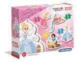 Zestaw 4 konturowych puzzli składających się z 3, 6, 9 i 12 elementów. Elementy wykonane są z tektury o grubości 3 mm. Aby ułatwić układanie, każdy obrazek ma inny kolor tła. Dla dzieci w wieku od 2 lat
