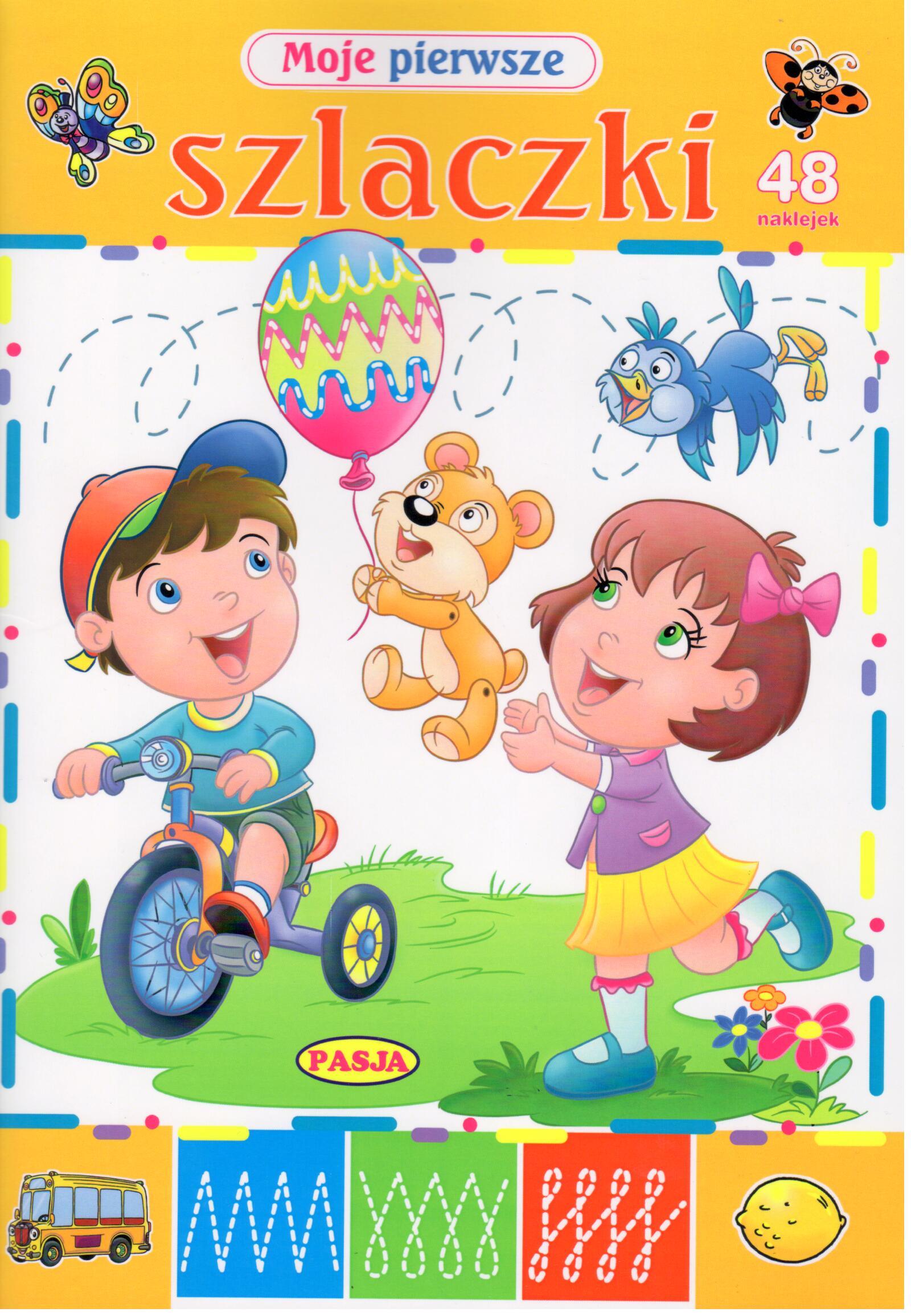 Zeszyt ćwiczeń do nauki pisania szlaczków z zadaniami logicznymi i naklejkami.