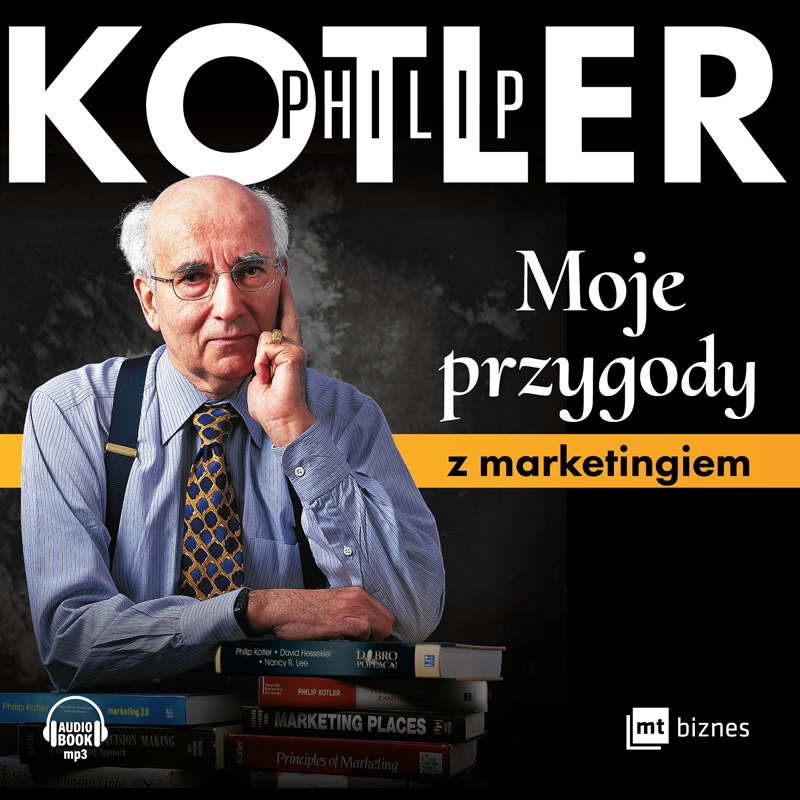 Philip Kotler to jeden z najważniejszych myślicieli w obszarze marketingu. Obecnie, w wieku 84 lat, ma na swoim koncie ponad 50 książek o tematyce marketingowej, które są wykorzystywane w codziennej pracy przez marketerów i biznesmenów na całym świecie. Nadal wykłada w Kellogg School of Management. Napisany przez Kotlera podręcznik marketingu został po raz pierwszy wydany w roku 1961, a niedawno ukazało się jego 14. wydanie. Moje przygody z marketingiem to pierwsza publikacja, w której Kotler opowiada o swoim życiu i tłumaczy, jakie zdarzenia inspirowały go do pracy nad kolejnymi książkami. Pisze na temat różnych zastosowań marketingu: w muzeach, w świecie polityki, w organizacjach non profit, w miastach, szpitalach oraz w kontekście społecznej odpowiedzialności firmy. Dzięki lekturze tej książki nie tylko poznasz kilka faktów z życia prawdziwego entuzjasty tej dziedziny, ale również dowiesz się co nieco na temat fundamentalnych zasad marketingu i zrozumiesz, jak możesz udoskonalić swoją firmę. Po raz pierwszy piszę coś, co ma charakter autobiograficzny. Jeśli choć trochę mnie kojarzysz, pewnie słyszałeś o 4P. Za tym skrótem kryje się miks marketingowy, czyli produkt (product), cena (price), dystrybucja (place) i promocja (promotion). Na miks marketingowy, stworzony w latach sześćdziesiątych ubiegłego wieku, składały się najważniejsze elementy procesu marketingowego. Moja książka Marketing, w której zajmuję się koncepcją 4P, stała się najpopularniejszym podręcznikiem na studiach z tej dziedziny na całym świecie. Obecnie na rynku znajduje się jej czternaste wydanie. Opublikowałem również 55 innych książek traktujących o marketingu, ale poruszających także inne tematy. Moje badania zaowocowały różnymi nagrodami, jak również 14 tytułami doktora honoris causa. Drogi Czytelniku, chciałbym podzielić się z tobą podróżą mojego życia. Philip Kotler