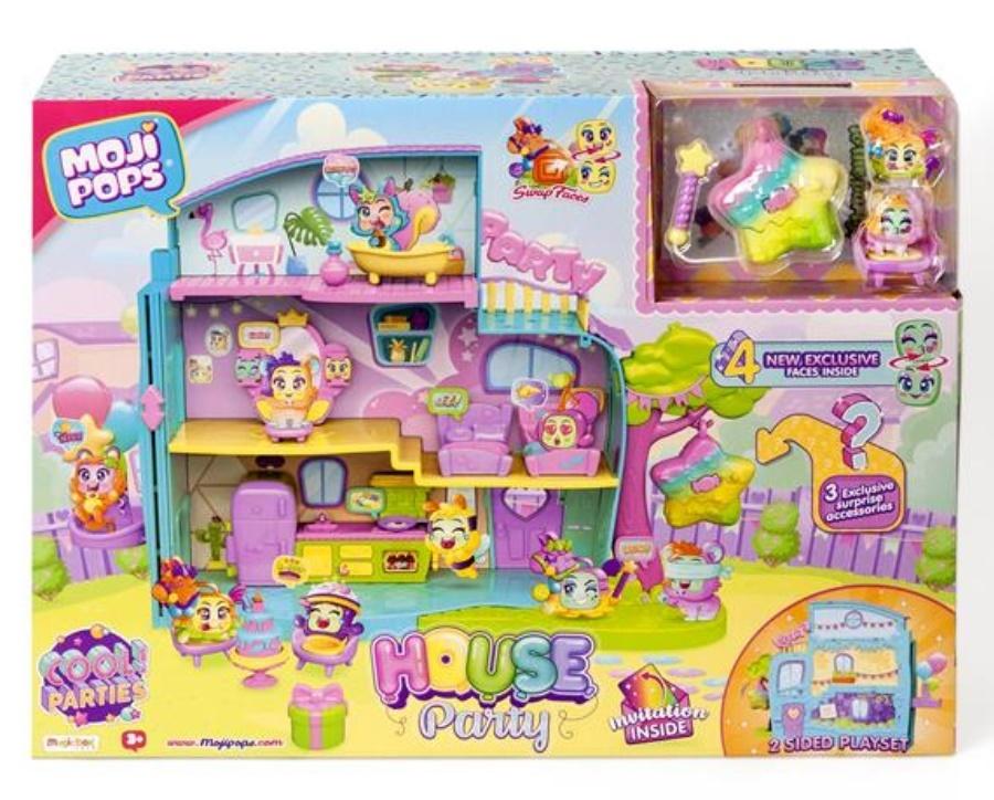 MojiPops zorganizowały wspaniałą domową imprezę! Czy dołączysz do zabawy? Dzięki windzie MojiPops dostaną się do wyższych części domu, gdzie mogą skorzystać z lustra, skakać po łóżkach, przygotować coś pysznego, a oprócz tego bawić się piniatą, która w swoim wnętrzu ukrywa niespodzianki. Spędź wspaniale czas z MojiPops i z House Party!