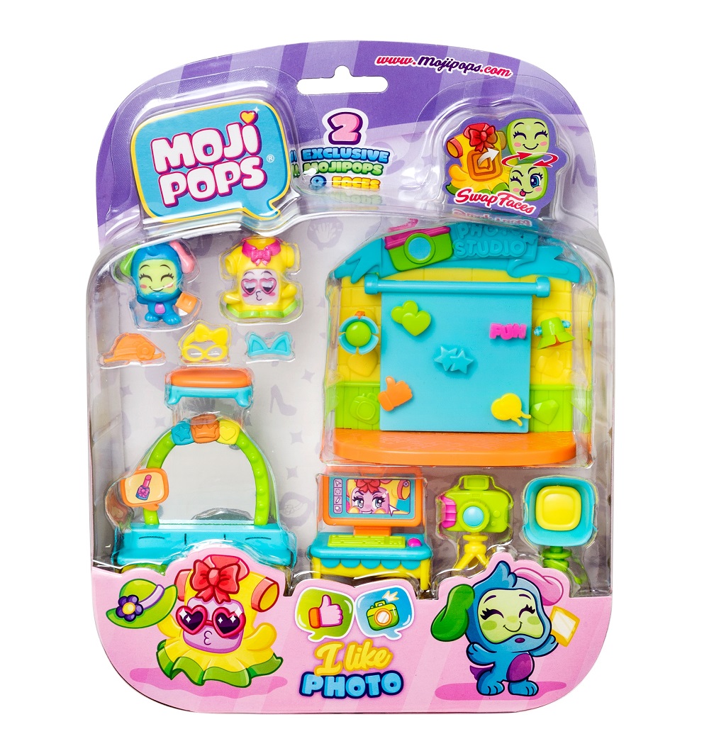 W tym fotograficznym studiu twoje MojiPops staną się profesjonalnymi modelkami. Przygotuj je przy toaletce do sesji zdjęciowej, zaproponuj odpowiednie pozy, wykorzystaj rekwizyty, ustaw aparat i gotowe! Kto wypadnie najlepiej? Odwracaj buzie MojiPops lub wymieniaj je z innymi figurkami i twórz własne sesje zdjęciowe. Zabawa nie ma końca!