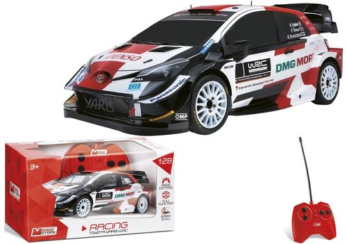 LICENCJA: Mondo Motors NAPĘD: Zmotoryzowany SKALA: 1:28 ILOŚĆ WZORÓW: 1 DOSTĘPNE SERIE: Toyota Yaris WRC WYMIARY OPAKOWANIA: 21 x 11 x 12 cm EFEKTY: mocna i trwała karoseria „LEXAN BODY”, pełne sterowanie kontrolerem, prędkość do 8 km/h, wymagane użycie baterii