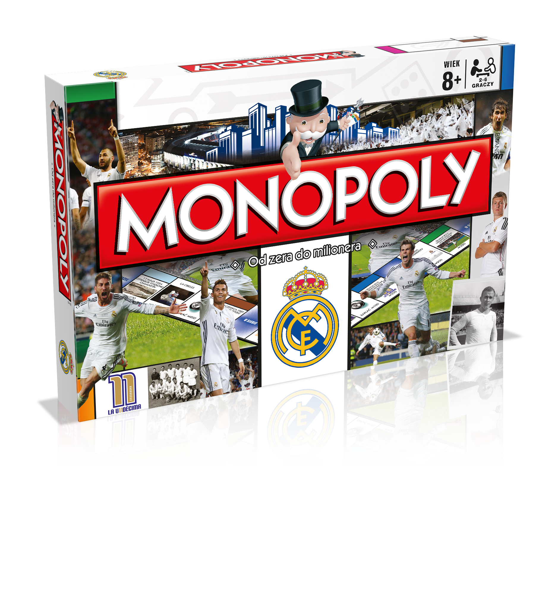 Zdobądź wszystko! Wciel się w rolę najwyższej klasy menadżera piłkarskiego w fascynującym świecie profesjonalnego footbalu. Sprawdź, jak to jest odnosić sukcesy jako menadżer Realu Madryt. Poznaj najwspanialsze momenty, miejsca i ludzi tworzących historię klubu. Zawartość: plansza 8 pionków 28 kart Tytuł Własności 16 kart U siebie 16 kart Na wyjeździe plik banknotów 32 trybuny 12 stadionów 2 standardowe kostki 1 szybka kostka instrukcja. Liczba graczy 2-6 Wiek 8