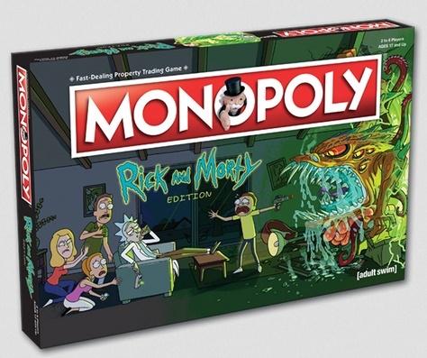 Edycja klasycznej gry Monopoly dla fanów kreskówki Rick and Morty. Zawartość: plansza 6 pionków 28 kart aktów własności 32 karty szansy 2 kostki banknoty instrukcja Wiek graczy: 17+ Liczba graczy: 2-6