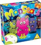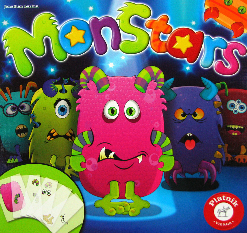 Zabawna gra dla 2-4 graczy od 6 lat. Potwornie zwariowana gra ćwicząca refleks i spostrzegawczość - Cóż to za straszny zgiełk za kulisami sceny? 45 niepowtarzalnych, kolorowych stworów zebrało się na corocznym show MonStars. Zadaniem graczy, wcielających się w członków jury, jest rozpoznać wszystkie szczegóły i szybko dobrać odpowiednie karty tak, aby odtworzyć całego potworka. W grze znajdziecie 189 plastikowych kart, a wśród nich 120 przezroczystych kart z oczami, rogami, rękami, nogami i innymi częściami ciała. Przezroczyste karty ułożone na sobie pozwalają szybko stworzyć podobiznę wylosowanego stwora.