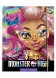 Poznaj pierwsze makijażowe triki dzięki temu sketchbookowi Monster High! Wewnątrz znajduje się potwornie wyjątkowy zestaw do makijażu. Dziewczynki mogą z bliska poznać wszystkie kosmetyki przez używanie ich nie tylko na ilustracjach, ale i na sobie, w czym pomoże im dołączone lusterko.