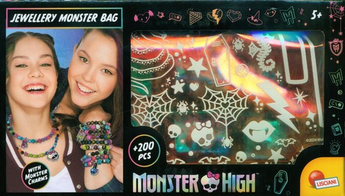Potworna torebka pełna kreatywnych materiałów w stylu Monster High! Stwórz bransoletki i naszyjniki z kolorowych koralików i zawieszek z zestawu. Noś ją zawsze ze sobą i zabieraj gdzie tylko chcesz!