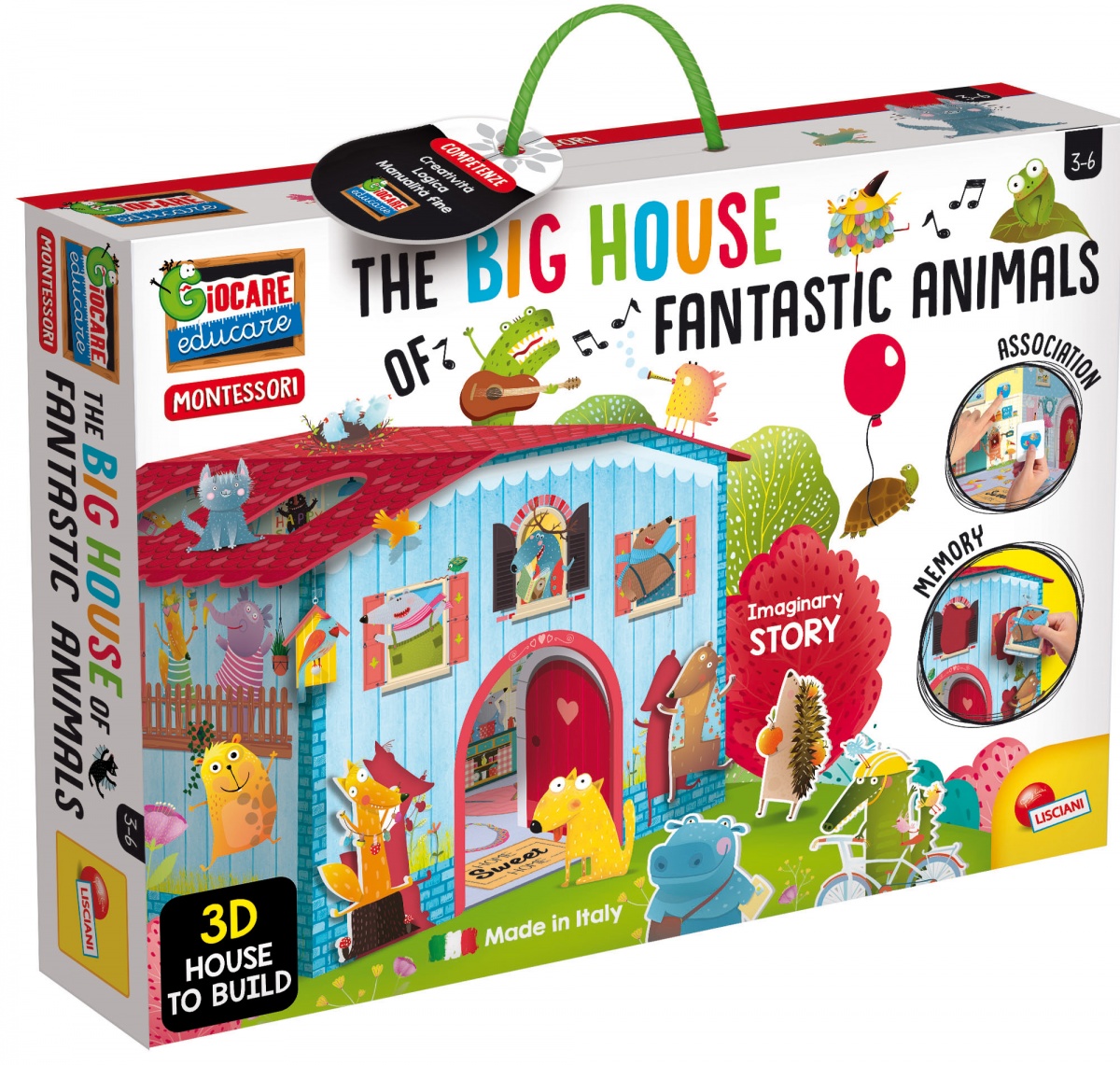 Zestaw pozwalający na zbudowanie wspaniałego domku dla zwierząt. W zestaiw znajduje się domek 3D do złożenia oraz tekturowe sylwetki do dopasowania. Podczas zabawy dziecko poza dopasowywaniem może próbować nazywać zwierzęta rozpoznając sylwetki jedynie używając dotyku. Zestaw również staje się matą, zapewniającą twórczą zabawę rozwijającą dziecięcą kreatywność. Dla dzieci w wieku od 3 do 6 lat