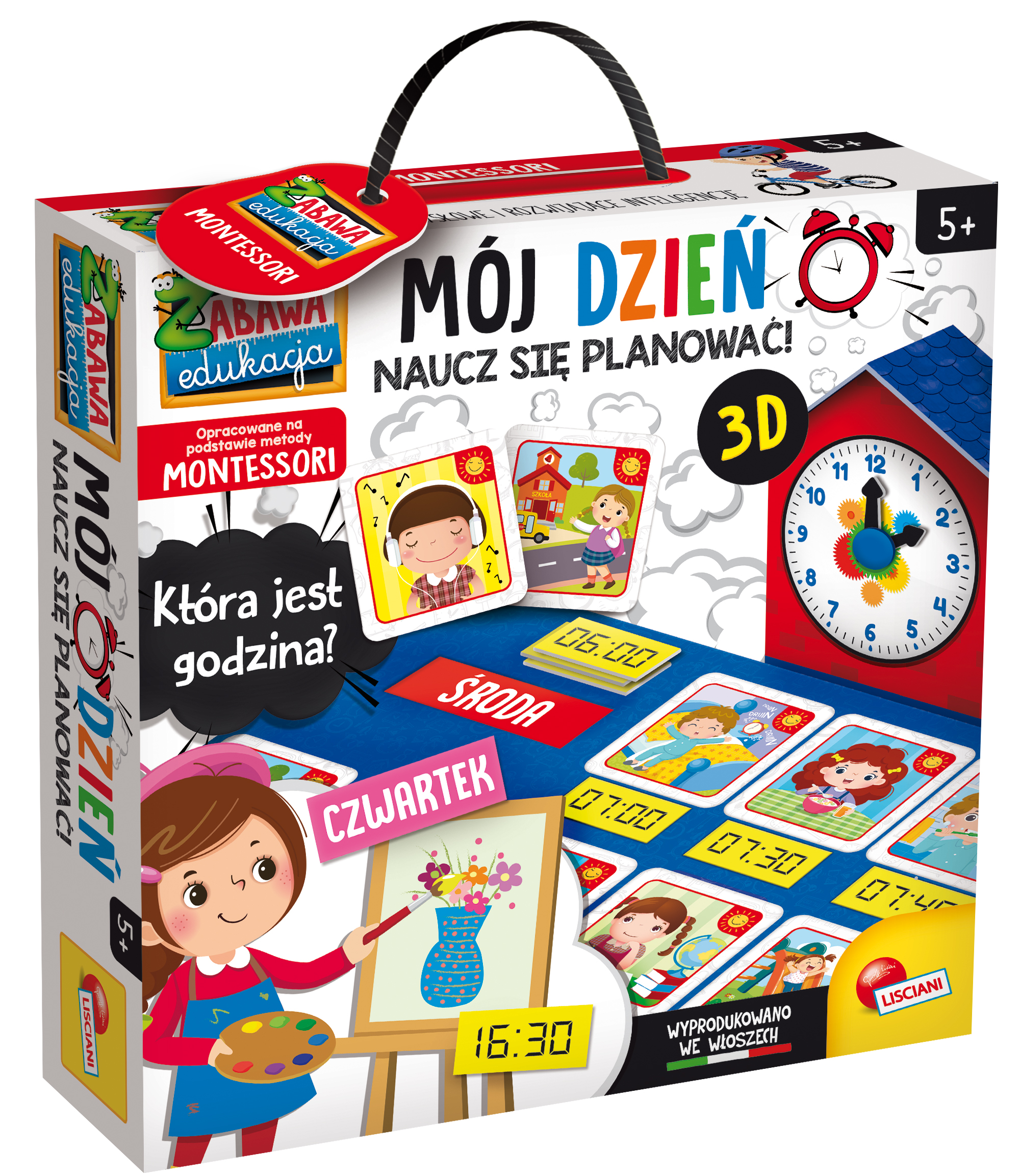 Poznaję czas to gra edukacyjna oparta na metodzie edukacyjnej włoskiej pedagog - Marii Montessori. Umożliwia dzieciom poznanie bliżej koncepcji czasu - podziału miesięcy na tygodnie, a tygodnie na dnie, które z kolei dzielą się na pory dnia. Zadaniem dziecka jest tworzenie harmonogramu swojego dnia i odpowiednie jego zaplanowanie. Odpowiednie czynności dziecko musi połączyć z odpowiednią porą dnia. Drugim sposobem na zabawę jest klasyfikacja czynności pod względem miejsca jej wykonywania - w takim wypadku dzieci muszą odpowiednio ułożyć karty w trójwymiarowym mieście. Do zestawu dołączony jest także trójwymiarowy zegar na którym dzieci mogą ćwiczyć wskazywanie czasu. Dla dzieci w wieku od 5 lat