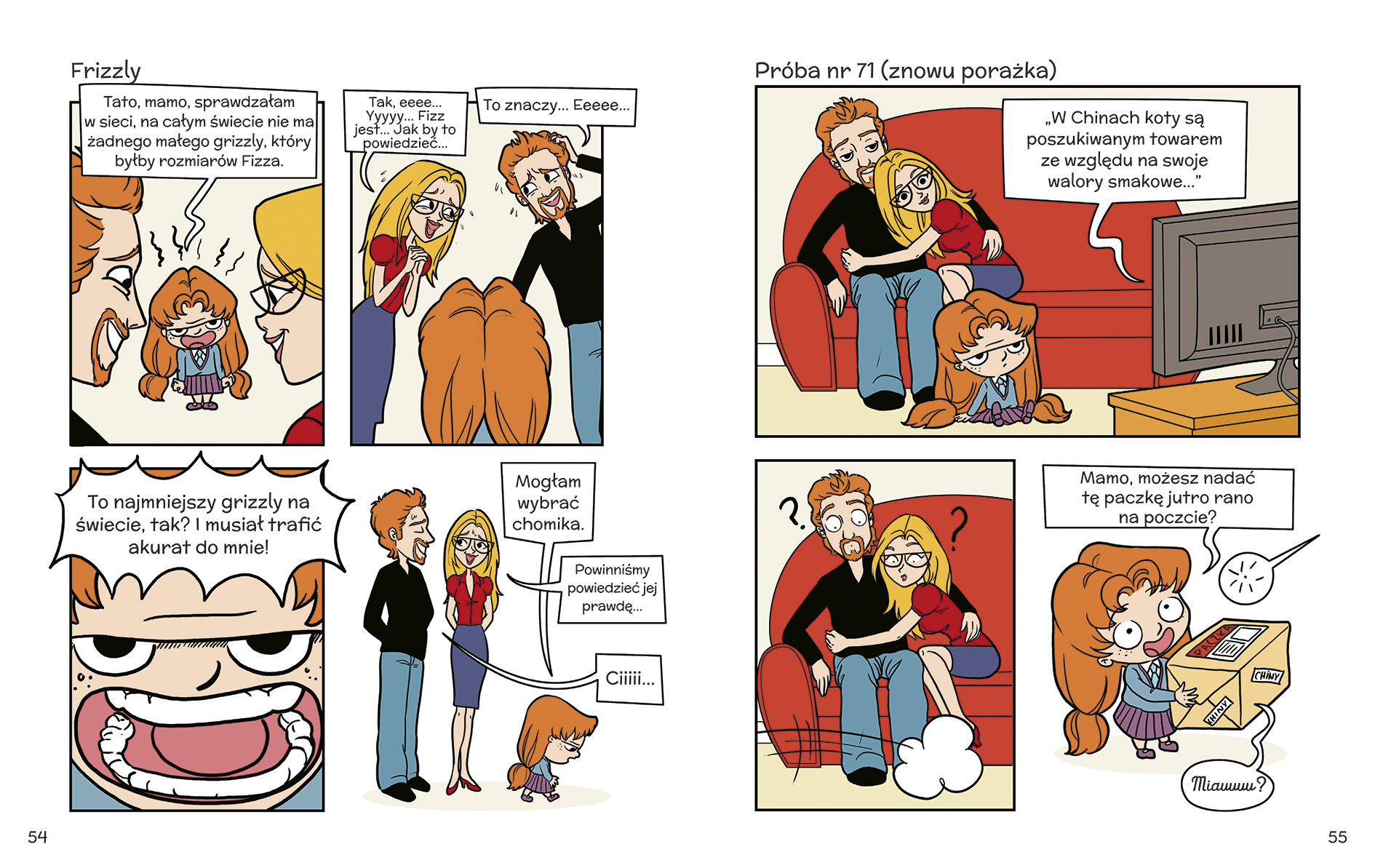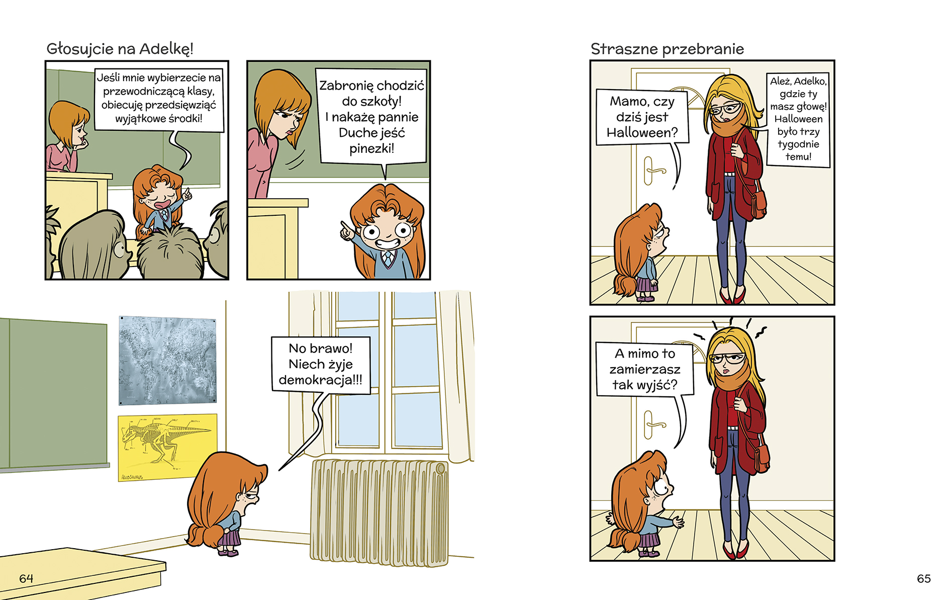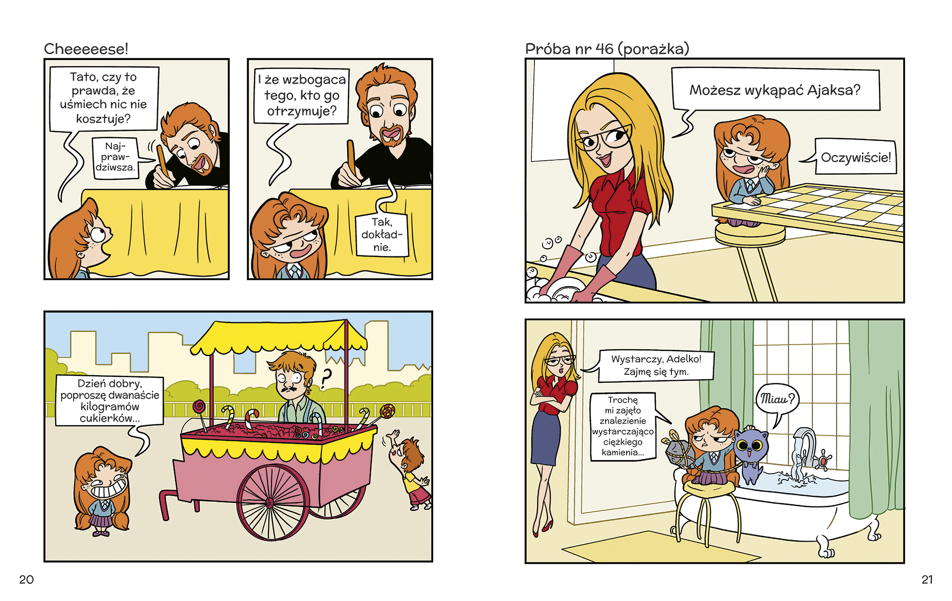 Jak przeżyć w świecie, w którym nikt nie traktuje dzieci poważnie? Oto przepis Adelki: weź sporą dawkę czarnego humoru, dodaj szczyptę czułości i chomika grizzly, który pomoże ci podbić świat. Adelka odkrywa, że aby zarobić duże pieniądze, nie trzeba się wcale napracować. Papier toaletowy sprzedawany na listki za piątaka (taniej ni będzie), napad rabunkowy na tatę (w końcu każda praca zasługuje na szacunek), a może po prostu uśmiech, który okazuje się twardą walutą i można go wymieniać na spore ilości cukierków? Adelka nie zawaha się nawet zapędzić do pracy własnego kota. Koniecznie pod krawatem.