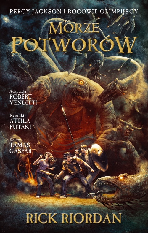 Siódma klasa była dla Percy’ego Jacksona zaskakująco spokojna. W jego nowojorskiej szkole nie pojawił się żaden potwór. Ale kiedy niewinna gra w piłkę zamienia się w śmiertelną rozgrywkę z gangiem wstrętnych olbrzymów kanibali, sytuacja robi się… nieprzyjemna. A niespodziewane pojawienie się przyjaciółki Percy’ego Annabeth oznacza kolejne złe wieści: magiczne granice Obozu Herosów zostały zatrute przez tajemniczego wroga i jeśli nie znajdzie się lekarstwo, zniszczeniu ulegnie jedyna bezpieczna przystań herosów. W kontynuacji niezwykle popularnego komiksu Złodziej pioruna Percy wraz z przyjaciółmi musi udać się na Morze Potworów, aby ocalić obóz. Ale najpierw odkryje zadziwiający sekret dotyczący jego rodziny – taki, który każe mu zadać sobie pytanie, czy bycie synem Posejdona to zaszczyt, czy tylko okrutny żart. W adaptacji Roberta Vendittiego – ze wspaniałymi rysunkami Attili Futakiego i oszałamiającymi kolorami nowego w tym zespole Tamása Gáspára – bestsellerowa książka Ricka Riordana powraca jako komiks Morze Potworów.