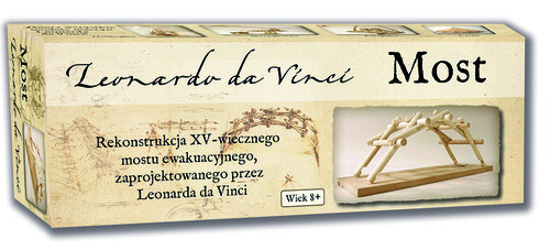 Most - samonośna konstrukcja do szybkiego montażu i demontażu. Zaprojektowana dla wojska. Złóż samodzielnie drewniany model mostu i odkryj tajemnice niezwykłego wynalazku Leonarda da Vinci Wielkość modelu po złożeniu to 24 x 9,5 cm. Idealny do zabawy i edukacji. Leonardo da Vinci zaprojektował wiele mostów, które przez setki lat pobudzały wyobraźnię ludzi. Ten most, nazywany czasami „mostem ratunkowym”, jest interesujący z powodu konstrukcji, w której nacisk na szczycie właściwie wzmacnia wytrzymałość, zaś ciężar łączy ze sobą belki. My dodaliśmy tylko kilka wycięć, dzięki którym cała konstrukcja jest bardziej stabilna. Kiedy złożysz model, sprawdź jego wytrzymałość! Dla dzieci w wieku od 8 lat