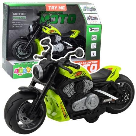 MOTOCYKL ZABAWKA ZIELONY Z EFEKTAMI ŚWIETLNYMI I DŹWIĘKOWYMI Motocykl zabawka to doskonała propozycja dla dzieci, które marzą o przygodzie na dwóch kołach i fascynują się światem pojazdów mechanicznych. Ten nowoczesny model został stworzony z myślą o młodych fanach motoryzacji, którzy szukają emocji, dynamicznej zabawy i realistycznych doznań. Dzięki solidnemu wykonaniu i efektownym funkcjom, motocykl staje się nie tylko źródłem zabawy, ale także sposobem na rozwijanie wyobraźni i umiejętności poznawczych dziecka. Motocykl został zaprojektowany w intensywnym, zielonym kolorze i wykonany z wysokiej jakości tworzywa sztucznego, odpornego na codzienne użytkowanie. Wyposażony w szerokie koła, solidny, masywny korpus oraz ergonomiczne uchwyty, zapewnia stabilność i komfort podczas zabawy. Jego sylwetka wzorowana jest na klasycznych jednośladach, a dodatkowe detale - takie jak realistycznie odwzorowany silnik i linie nadwozia - dodają mu charakteru i sprawiają, że wygląda jak prawdziwy motocykl. Zabawka posiada wbudowane efekty świetlne i dźwiękowe, które aktywowane są przyciskiem umieszczonym w łatwo dostępnym miejscu. Po naciśnięciu dziecko usłyszy dźwięki silnika i zobaczy migające światła na przodzie pojazdu. Te interaktywne elementy przyciągają uwagę, stymulują zmysły dziecka i wzbogacają codzienną zabawę. To idealny pomysł na prezent, który zachwyci każdego małego miłośnika pojazdów i dynamicznej zabawy. SPECYFIKACJA: Materiał: tworzywo sztuczne Zasilanie: 3x AG13 (w zestawie) Efekty: świetlne i dźwiękowe Wymiary motocykla: 22,5 x 12,5 x 11 cm Wymiary opakowania: 25,5 x 19 x 11,5 cm ZAWARTOŚĆ ZESTAWU: Motocykl zabawkowy Baterie (3x AG13) Ozdobne opakowan