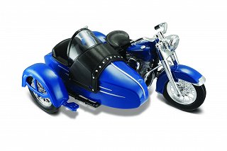 Motocykl Harley-Davidson z wózkiem bocznym w skali 1:18. Metalowy odlew z plastikowymi częściami. Skrętne przednie koło i kierownica. Wiek: 3+.