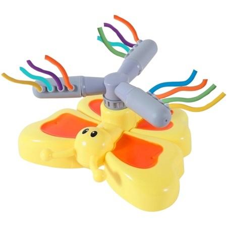 2 opcje zraszania: Zabawka wyposażona jest w dwa rodzaje głowic - jedną z kolorowych, elastycznych rurek, które poruszają się pod ciśnieniem wody, rozpryskując ją wokół siebie, oraz drugą z wiatraczkiem, który obraca się o 360. Otwory wiatraczka umożliwiają regulację kierunku strumienia wody, co daje kontrolę nad wodną zabawą. By rozpocząć zabawę, wystarczy podłączyć do motylka wąż ogrodowy i włączyć wodę, a motylek będzie rozpraszać wodę wokół pod wpływem ciśnienia wody. Zraszacz nie potrzebuje źródeł zasilania, do działania zabawki wystarczy siła ciśnienia wody.