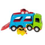 MÓWIĄCE AUTO Z LAWETĄ Mówiące Auto z Lawetą jest bezpieczną zabawką już dla rocznego dziecka. Może się nią bawić także starsze dziecko (zabawka rekomendowana do 5-go roku życia). Auto Laweta mówi po polsku frazy związane tematycznie z zabawą w samochody np.; „Kończy się paliwo”, „Jaki straszny korek”. Auto ma dwupoziomową lawetę na którą można wjechać dzięki opuszczanej z tyłu auta pochylni. Po naciśnięciu dachu wydaje realistyczne dźwięki. Dwa małe autka dołączone do zestawu mogą się ze sobą łączyć za pomocą magnesów. Mówiące Auto z Lawetą: • Mówi po polsku • Podczas zabawy wydaje realistyczne dźwięki • Przycisk funkcyjny na dachu • Ma odłączaną naczepę, którą można skręcać • 2 poziomy do przewożenia samochodów • Rozkładana pochylnia ułatwia wjeżdżanie • W zestawie 2 auta łączące się magnesem Mówiące Auto z Lawetą pomaga rozwijać umiejętności: • Poznawcze- rozwija ciekawość • Rozwój fizyczny – rozwija dużą motorykę • Rozwój społeczny – rozwija komunikację Specyfikacja: • SP82972 • Wiek: 1-5l • EAN: 5905375829728 • Wymiary produktu: szer. 12 cm., wys. 17 cm., gł. 33 cm. • Baterie: 2 x AA dołączone • Bezpieczeństwo: EN71-1, EN71-2, ENT1-3, EN62115 • Importer: Anek dla Dzieci