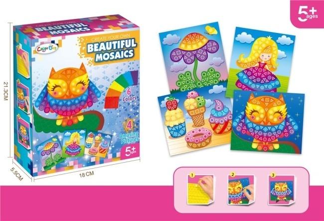 Zestaw Kreatywny "Stwórz Własne Piękne Mozaiki" - Rozbudź Wyobraźnię i Zdolności Manualne Twojego Dziecka! Podaruj swojemu dziecku fascynującą przygodę z tworzeniem własnych, błyszczących mozaik! Nasz zestaw "Stwórz Własne Piękne Mozaiki" to doskonały sposób na kreatywne spędzenie czasu i rozwijanie zdolności manualnych u dzieci w wieku od 5 lat. Wewnątrz kolorowego opakowania znajdziesz wszystko, co niezbędne do stworzenia czterech unikalnych i uroczych obrazków. Każdy z nich przedstawia inną, przyciągającą wzrok ilustrację, gotową do ozdobienia błyszczącymi, samoprzylepnymi mozaikami. Do dyspozycji małych artystów oddajemy aż 6 różnorodnych kolorów połyskujących naklejek, które dodadzą blasku każdemu dziełu. Co zawiera zestaw? 4 kolorowe plansze z obrazkami do ozdobienia: Każda plansza przedstawia inny, ciekawy motyw, który zachęca do kreatywnej zabawy. 6 arkuszy błyszczących naklejek w różnych kolorach: Mnogość odcieni pozwala na tworzenie barwnych i efektownych mozaik. Proste instrukcje krok po kroku: Dzięki nim nawet najmłodsi artyści poradzą sobie z tworzeniem swoich dzieł bez problemu. Dlaczego warto wybrać nasz zestaw do mozaik? Rozwija motorykę małą: Naklejanie drobnych elementów mozaiki doskonale ćwiczy precyzję ruchów dłoni i koordynację wzrokowo-ruchową. Pobudza kreatywność i wyobraźnię: Dziecko ma swobodę w doborze kolorów i rozmieszczeniu naklejek, co rozwija jego artystyczne myślenie. Uczy cierpliwości i koncentracji: Tworzenie mozaiki wymaga skupienia i dokładności, co pozytywnie wpływa na zdolność koncentracji. Gwarantuje wspaniałą zabawę: Efekt końcowy w postaci błyszczącego obrazka daje dziecku mnóstwo satysfakcji i radości z własnoręcznie wykonanej pracy. Idealny pomysł na prezent: Zestaw zapakowany jest w estetyczne pudełko i stanowi doskonały upominek na różne okazje. Zestaw "Stwórz Własne Piękne Mozaiki" to nie tylko świetna zabawa, ale także wartościowy sposób na wspieranie rozwoju Twojego dziecka. Pozwól mu odkryć w sobie artystę i cieszyć się tworzeniem unikalnych, błyszczących dzieł sztuki!