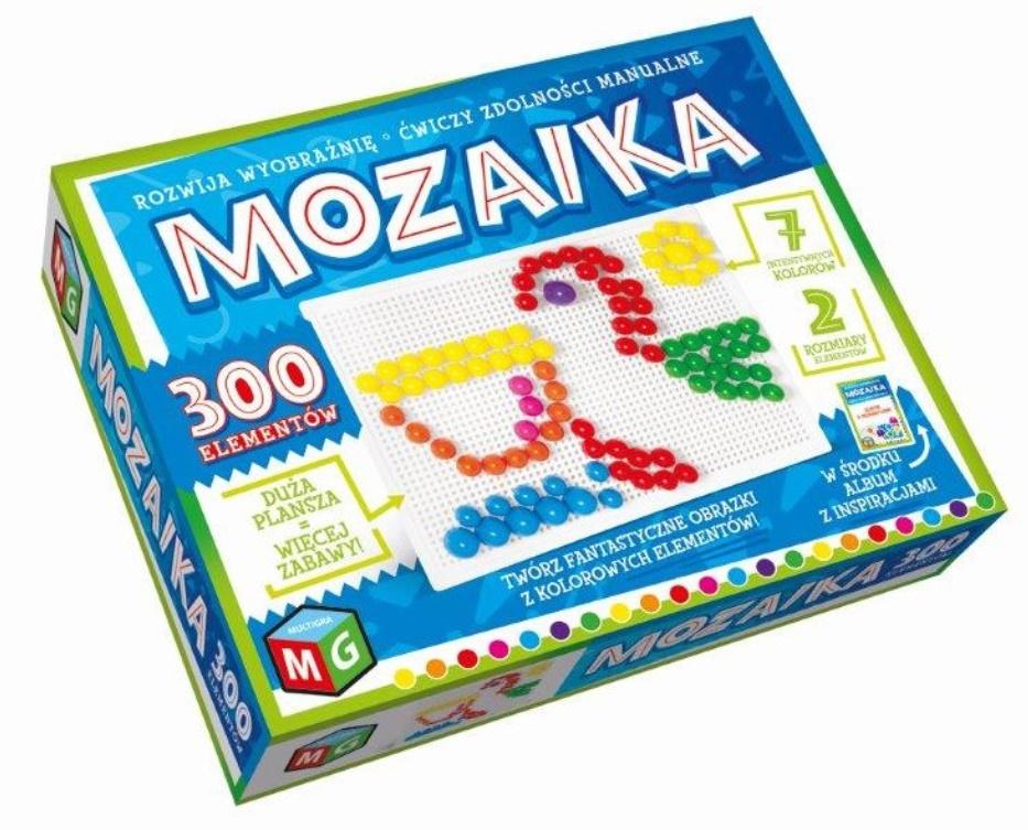 Mozaika to kreatywny zestaw edukacyjny zarówno dla małych, jak i dużych. W skład zestawu wchodzi duża plansza do układania wzorów oraz 300 elementów, w dwóch rozmiarach. Zabawka pobudza kreatywność i rozwija wyobraźnię. Usprawnia małą motorykę u dzieci i pomaga odkryć na nowo dziecięcą przyjemność z zabawy u trochę starszych. Do zestawu dołączony jest album z inspiracjami. Możecie również pobudzić swoją wyobraźnię i układać własne motywy! Po wykonaniu projektu wystarczy wyjąć elementy i zacząć od nowa.