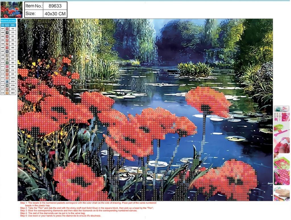 - mozaika diamentowa do wyklejania diamencikami, motyw kwiaty, rozmiar 30x40 cm