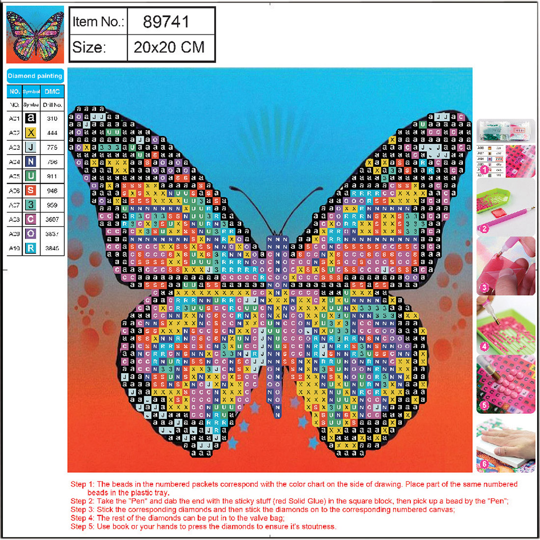Opakowanie Mozaika diamentowa 5D kit 20x20 cm  BUTTERFLY 89741 CENTRUM