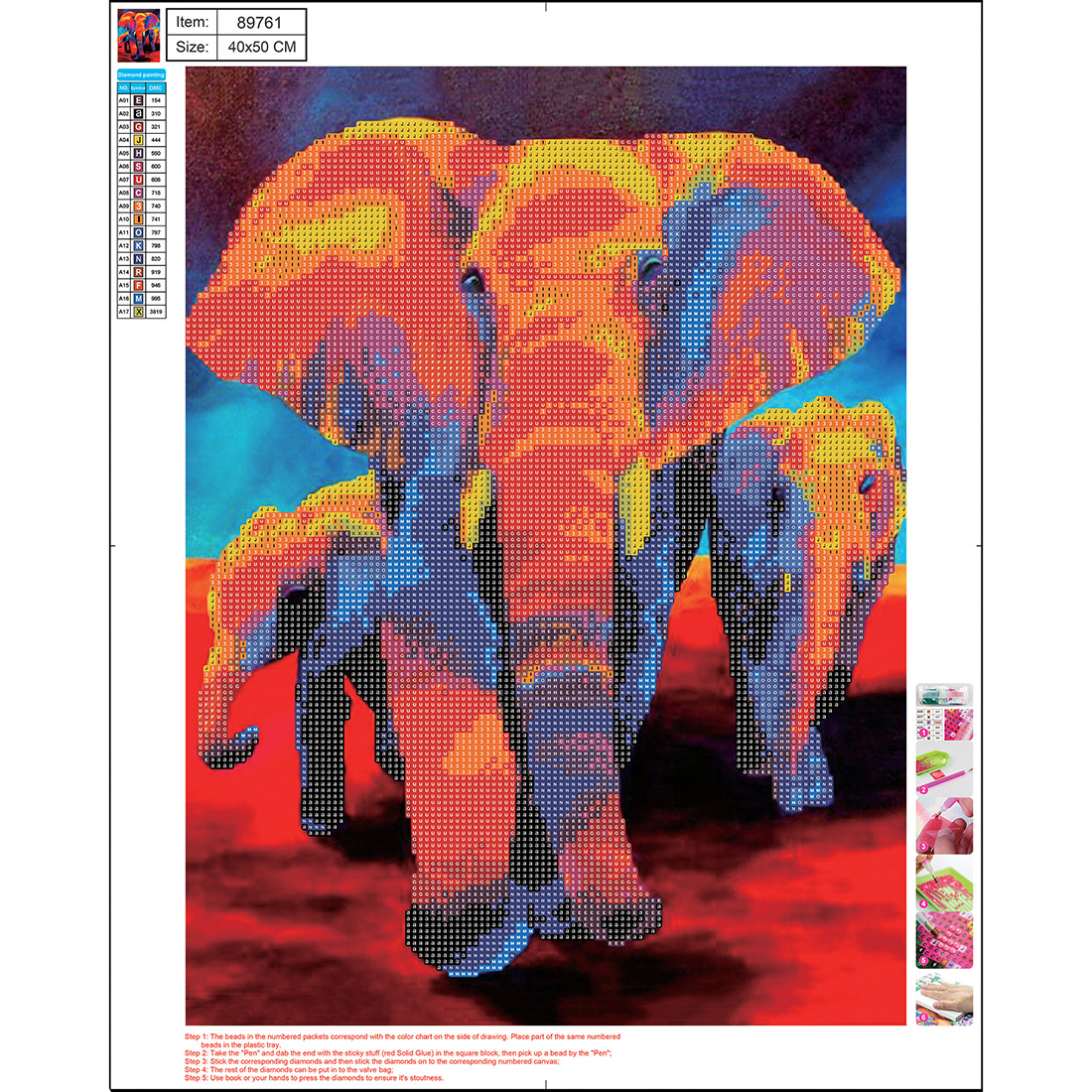 Opakowanie Mozaika diamentowa 5D kit 40x50 cm ELEPHANT 89761 CENTRUM