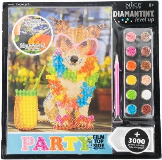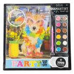 Zestaw z kryształkami do tworzenia mozaiek z kolorowymi kamieniami. Zabawa z mozaiką diamentową polega na układaniu obrazka z tysięcy malutkich, kolorowych diamencików według naniesionego na kartonie nadruku. Obrazek pokryty jest warstwą klejącą, która utrzymuje kryształki na odpowiednich miejscach. Kompletny zestaw do wykonania mozaiki zawiera: obrazek nadrukowany na grubej tekturze, na którym naniesione są literki i cyferki wskazujące miejsca, gdzie należy ułożyć poszczególne kolory; diamenciki w różnych kolorach; aplikator z woskiem, pojemnik na diamenciki oraz przewodnik po kolorach. Instrukcja obsługi: odklej kawałek folii ochronnej, która zabezpiecza klej na obrazku przed wyschnięciem znajdź odpowiednie diamenciki, wysyp część na tackę potrzyj aplikator delikatnie woskiem i chwyć kryształek przenieś kryształek na odpowiednie miejsce na obrazku i przyklej do niego Zawartość: obrazek na grubej tekturze o wymiarach A4 - 29,7 x 21 cm kolorowe kryształki (12 kolorów) - ponad 3 tyś. sztuk aplikator z woskiem do kryształków tacka przewodnik po kolorach Wiek: 8+