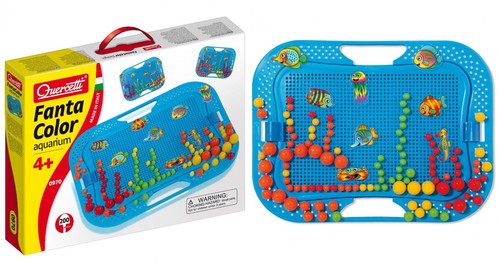 Walizeczka pełna kolorowych kołeczków, dzięki którym dzieci mogą tworzyć wspaniałe, kolorowe wzory. Wykonanie walizeczki jest bardzo praktyczne: podczas zabawy służy jako podstawa dla tablicy, a po zabawie można wszystkie elementy schować do walizeczki. Dzięki uchwytom, które przytrzymują perforowaną tablicę, dzieci mogą przenosić zabawkę. Zestaw idealnie sprawdza się w czasie podróży. Zabawka doskonale rozwija zdolności manualne oraz koordynacje wzrokowo-ruchową, pomaga również w nauce rozpoznawania kolorów, a także uczy logicznego myślenia. Zawartość: - 200 kołeczków - mix - walizka - 8 obrazków z rybkami Wiek 4+