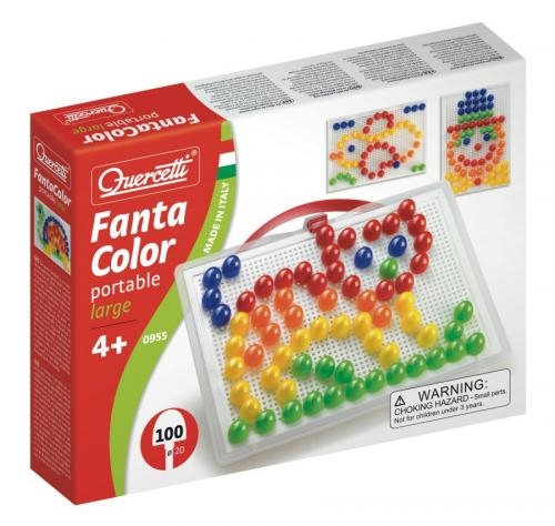 Dzieci mogą tworzyć pierwsze mozaiki lub kopiować przykłady z albumu. Zabawa polega na wstawianiu różnej wielkości, niełamliwych kołeczków w perforowaną tablicę. Gotową mozaikę można powiesić na ścianie, tak aby udekorować pokój w oryginalny sposób. Wszystkie elementy przechowywane są w poręcznej walizeczce, którą można swobodnie przenosić. Zabawka rozwija kreatywność oraz ćwiczy koordynację wzrokowo-ruchową. Zawartość: - 100 dużych kołeczków o średnicy 20 mm - walizka - album z przykładami do odwzorowania Zabawka dla dzieci w wieku od 4 lat.